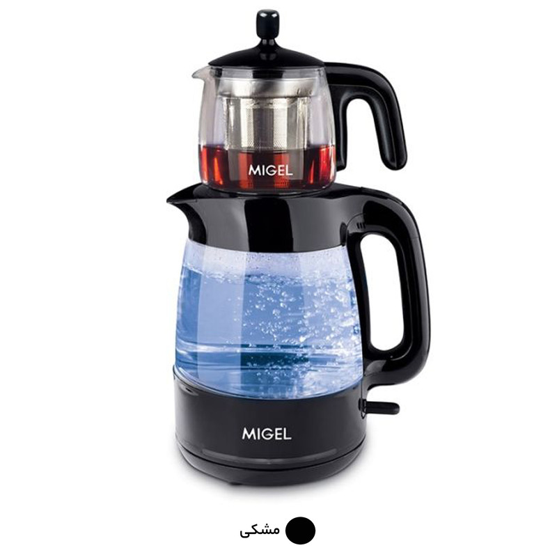 چای ساز میگل مدل GTS 070 جزو چایسازی هایی است که از نظر ظاهری بسیار زیباست و طراحی شکیلی دارد. کتری این چایساز بسیار حجیم است و 2.5 لیتر حجم دارد و قوری این دستگاه نیز 700 میلی لیتر ظرفیت دارد. کتری این دستگاه از جنس شیشه است و از نوع کتری های بی سیم است که قابلیت چرخش 360 درجه ای بر روی کفی را دارد. در کنار چای ساز میگل مدل GTS 070 نشانگر میزان آب تعبیه شده است که در هر لحظه میتوانید میزان آب موجود در کتری را مشاهده کنید. صافی جداشدنی این چایساز از جنس استیل ضدزنگ است و حجم مناسبی دارد. همچنین این محصول دارای قابلیت گرم نگهدار می باشد.