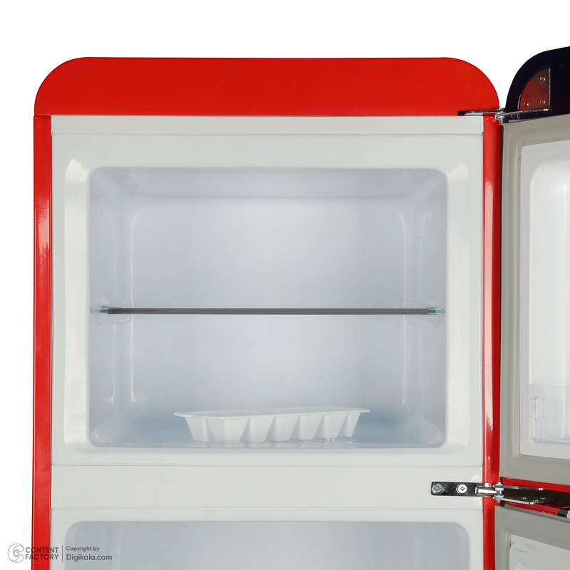 فریزر این دستگاه دارای دو طبقه داخلی است که فضای زیادی در اختیار شما قرار نمیدهد ولی حداقل جای ممکن برای محصولات فریزری در اختیار شما است. اگر به فضای بیشتری برای فریزر احتیاج دارید میتوانید از یک فریزر جدا نیز استفاده کنید. یک طبقه نیز در درب یخچال قرار گرفته تا از فضای درب نیز به درستی استفاده کنید. قالبهای یخساز نیز بهکارتان میآید.